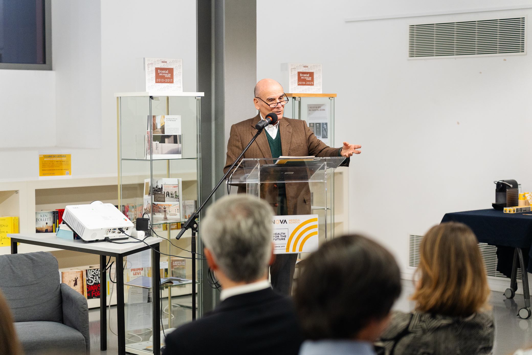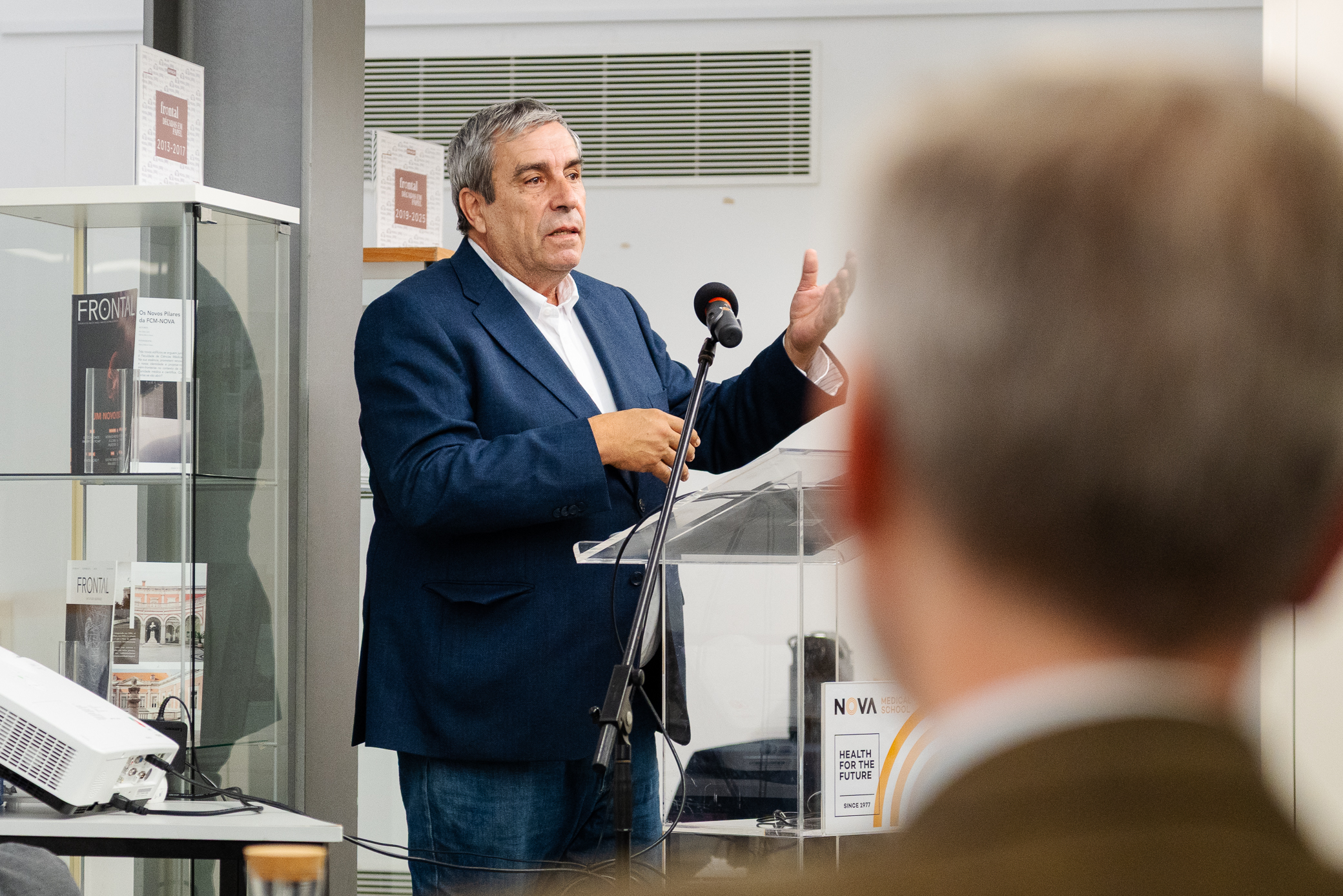 A sessão de inauguração contou com a presença da Professora Catedrática e Subdiretora para a Extensão à Comunidade da NOVA Medical School, Conceição Calhau; do antigo Diretor da NOVA Medical School e antigo Reitor da Universidade NOVA de Lisboa, António Rendas; do Presidente do Sincidato Independente dos Médicos e ex-diretor da Revista Frontal, Jorge Roque da Cunha; e do alumnus da NOVA Medical School e também ex-diretor da Revista, Tiago Baptista.