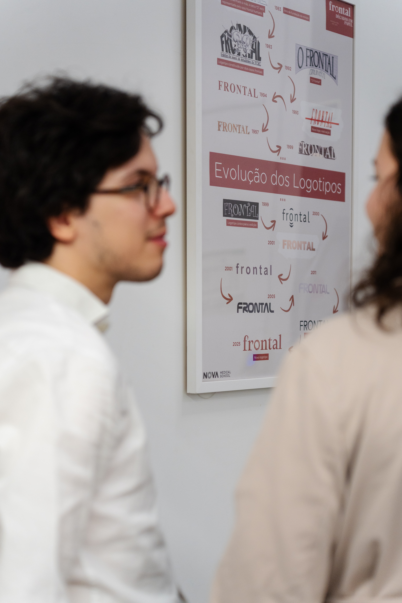 A exposição apresenta pela primeira vez a coleção completa das edições impressas da Frontal — desde a sua criação até à mais recente 55.ª edição, lançada em outubro de 2025 —, e convida a revisitar a evolução da comunidade estudantil e o papel dos estudantes de Medicina e de Nutrição na construção da vida académica e cultural da Escola.