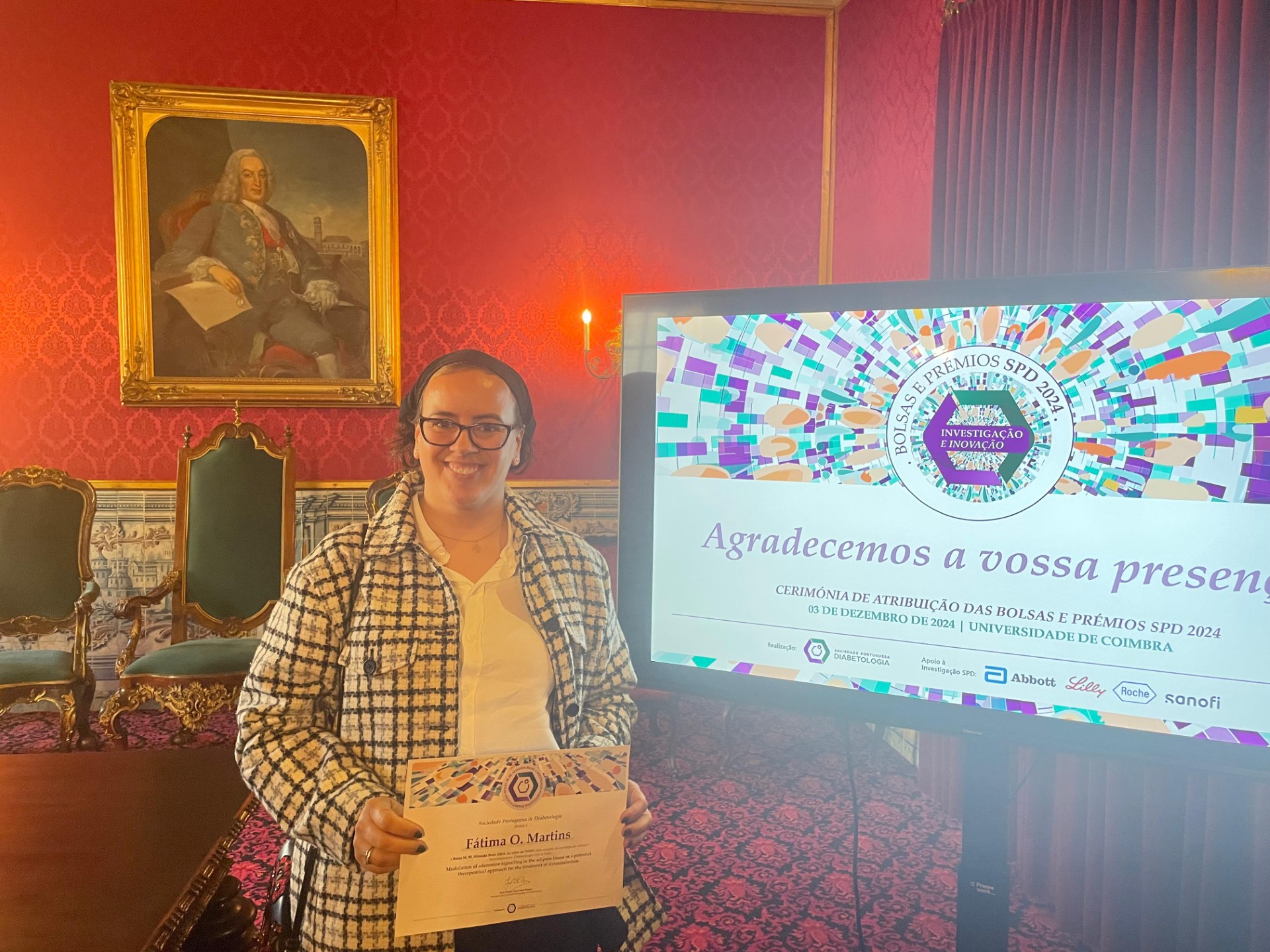 Os Prémios e Bolsas SPD distinguem anualmente projetos pelo impacto significativo, originalidade e contributo para o avanço do conhecimento científico na área da diabetes. Este ano, a investigação da NOVA Medical School venceu duas das quatro bolsas atribuídas. A cerimónia de entrega decorreu no dia 3 de dezembro de 2024, na Sala do Senado da Reitoria da Universidade de Coimbra.